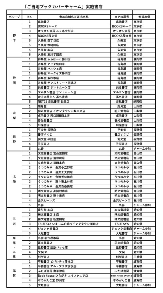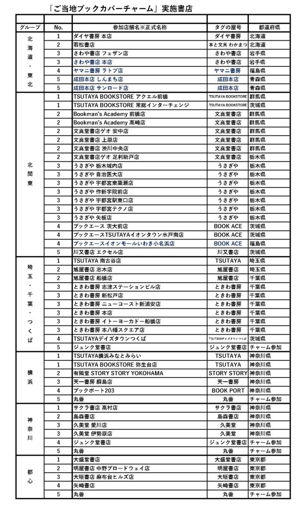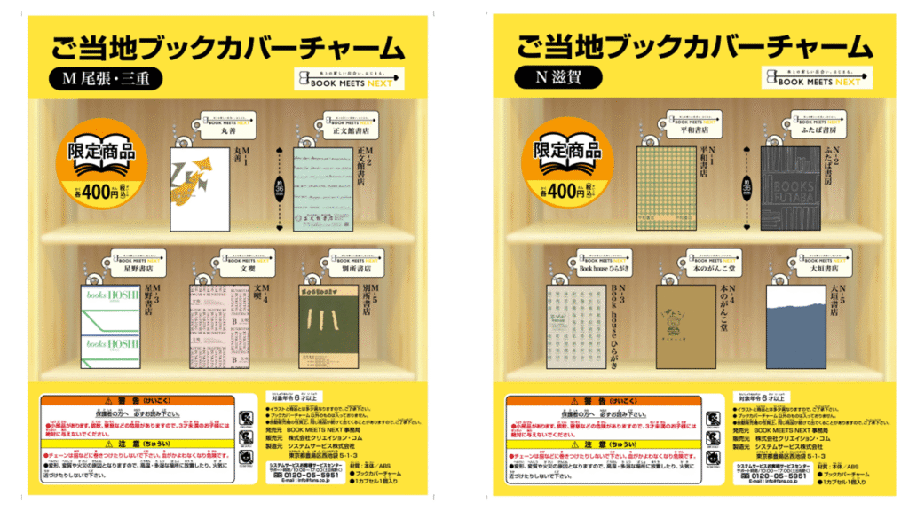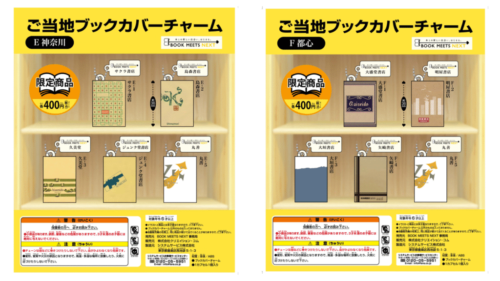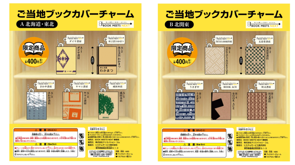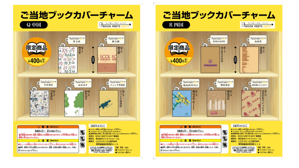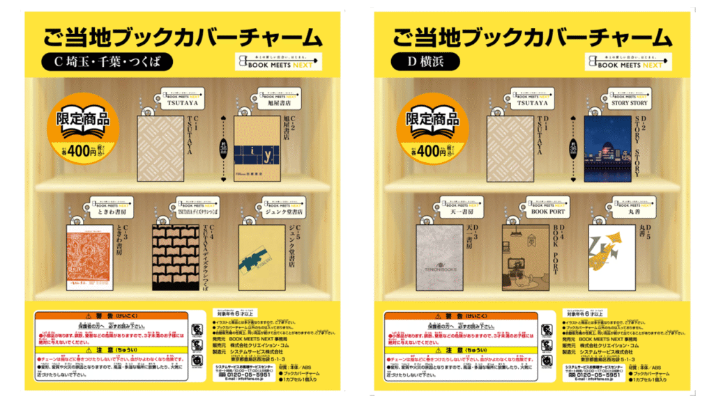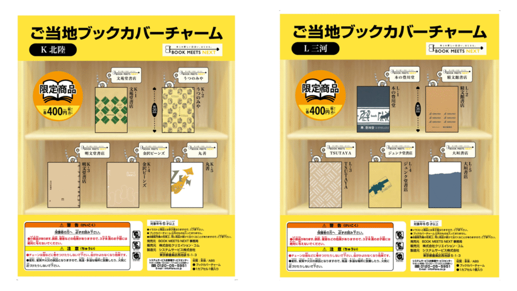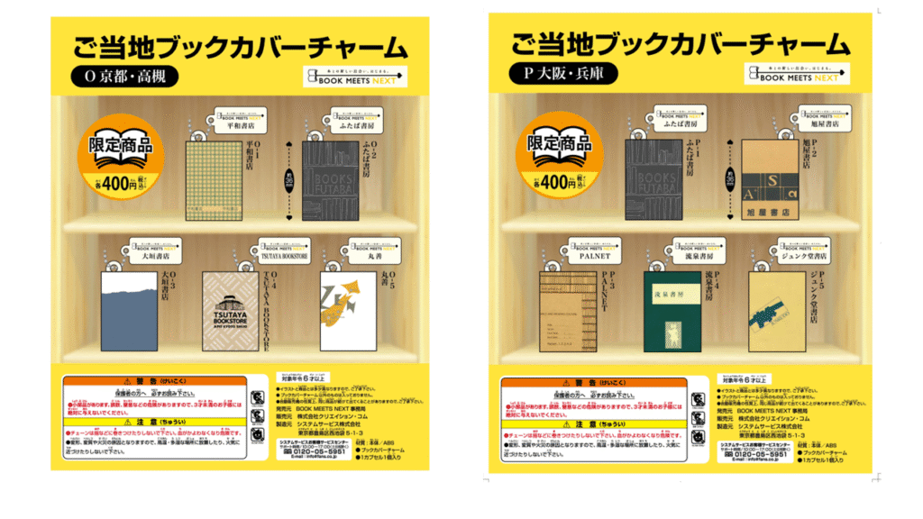 ※「チャーム参加」とある書店は当該地域のカプセルトイにデザイン提供のみ行っており、域内の店舗での販売はございません。 ご了承ください。