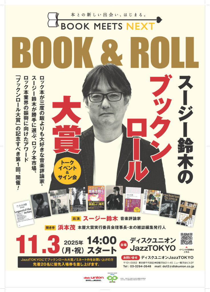 場所:ディスクユニオンJazzTOKYO 観覧無料※JazzTOKYOにてブックンロール大賞ノミネート作をお買い上げ・ご予約の方・先着20名に優先入場券を差し上げます。