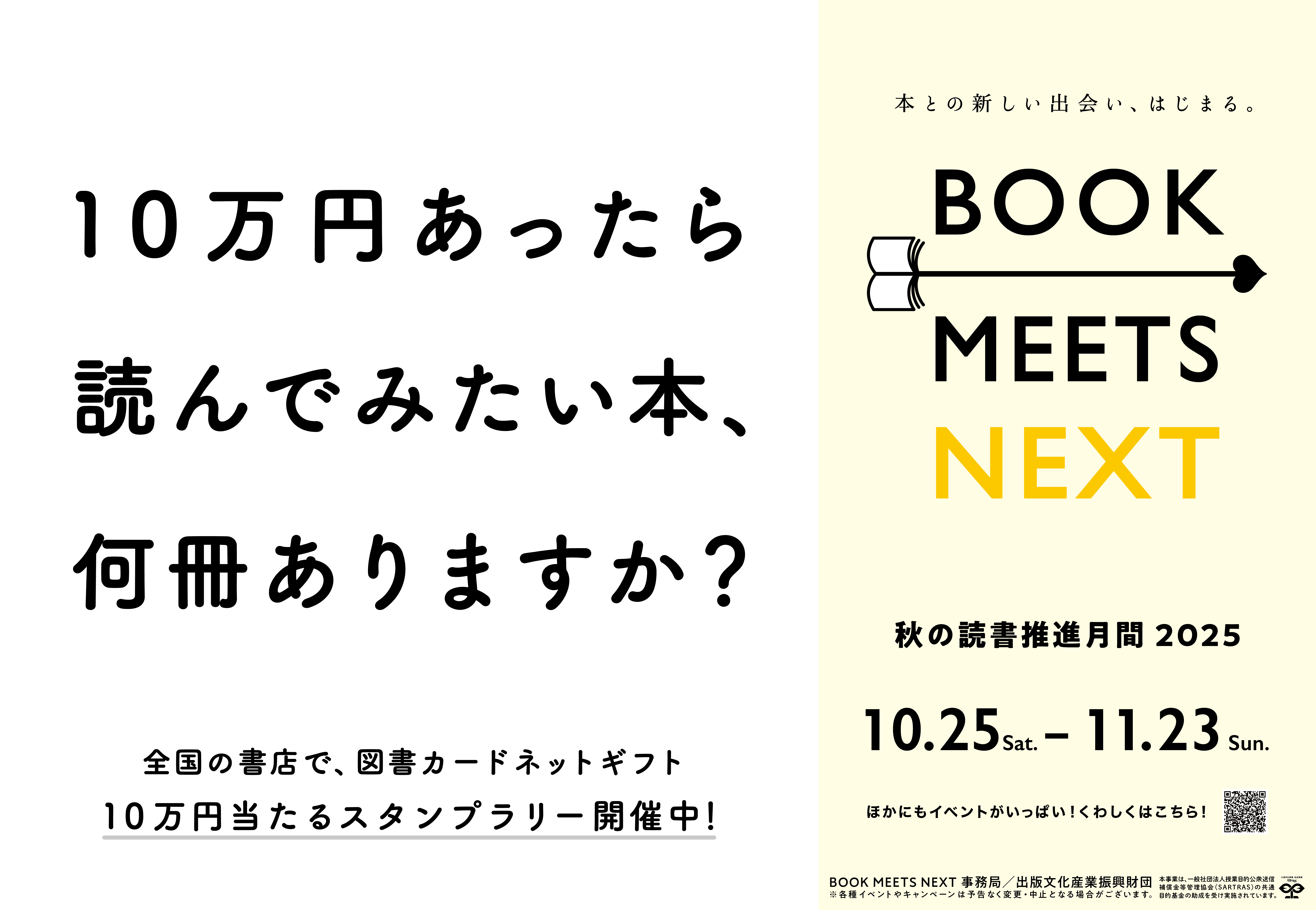 書店掲示物 BOOK MEETS NEXT のポスター・ロゴ等は下記よりダウンロードいただけます 書店掲示用ポスター 【ダウンロード】書店掲示用ポスター① 【ダウンロード】書店掲示用ポスター② バナー用ロゴマーク 【ダウンロード】バナー用ロゴマーク① 【ダウンロード】バナー用ロゴマーク② back